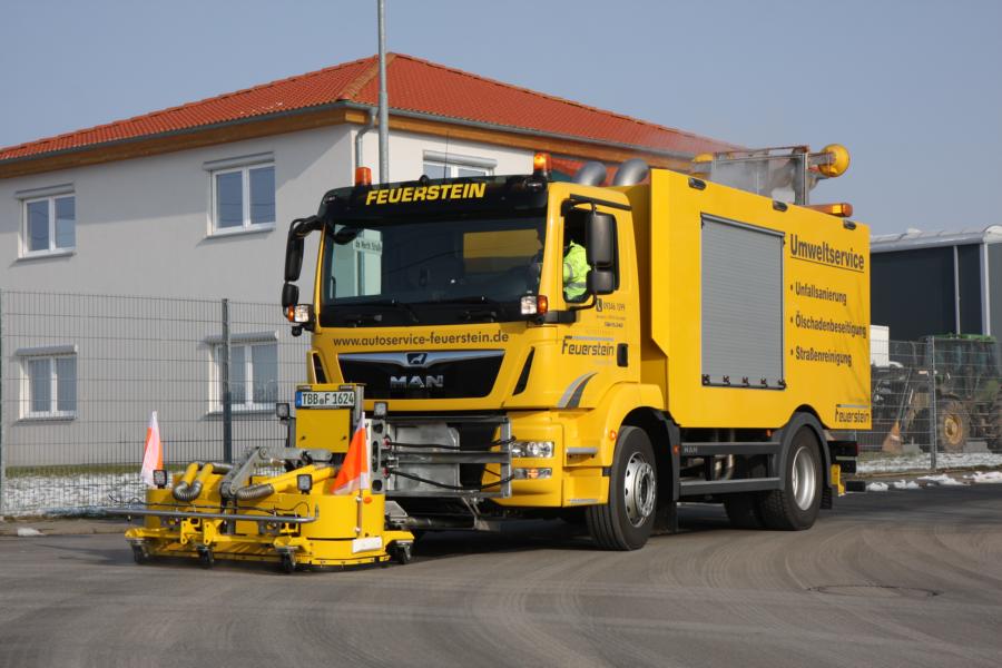 In die Entwicklung des Spezialfahrzeugs ist das jahrelange Know-how von Firmenchef Martin Feuerstein bei der Beseitigung von Ölspuren mit eingeflossen. Selbst die Feuerwehrleute waren am Ende überzeugt. Heute wird das Fahrzeug in einem Umkreis von 50 Kilometern rund um den Sitz von Autoservice Feuerstein im Taubertal eingesetzt.