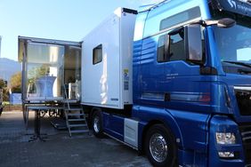 So sieht der Event-Trailer aus, wenn keine Gäste da sind. Er kann bei BFS gemietet werden.