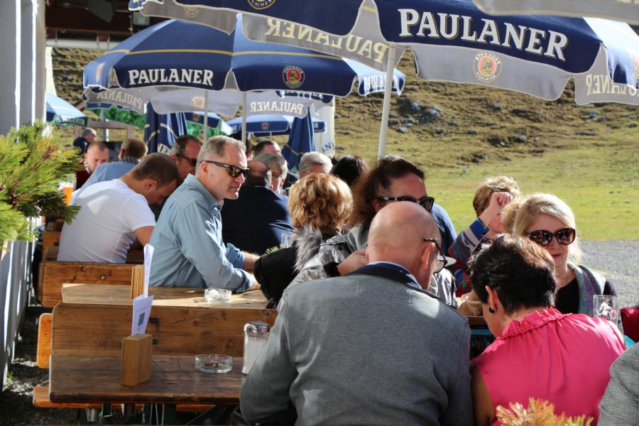 Die Festgesellschaft auf der Hochalm. Ein Teil der Gäste war per Seilbahn und Gondel angereist.