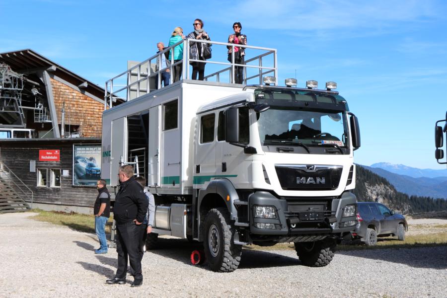 Zur Einweihung kamen zahlreiche geladene Gäste, darunter auch Holger Mandel, Vorsitzender der Geschäftsführung der MAN Truck & Bus Deutschland GmbH. Ein zweiter Programmpunkt war die Feier des EM-Titels des BFS Trucksport Teams, bestehend aus Jan Plieninger und Marc Stegmaier, auf der auf 1705 Meter Höhe gelegenen Hochalm. Gleich drei MAN-Fahrzeuge hatte BFS mit auf die Hochalm gebracht. Auf schmalen Wegen ging es bergauf, wobei ein Höhenunterschied von rund 1000 Metern zu überwinden war. Ein dritter Programmpunkt an diesem Tag war die Aufnahme von Hermann Stegmaier in den Wirtschaftssenat des Landes Baden-Württemberg.